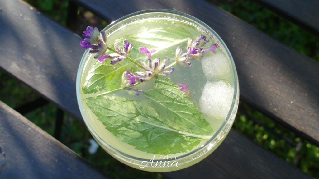 Én egy citromos, mézes, levendulás, mentás limonádét készítettem, a kertben szedett növényekből, ez látható a képen. De zsályásat, méz nélkülit….stb-t is készíthetsz, amihez épp kedved van.