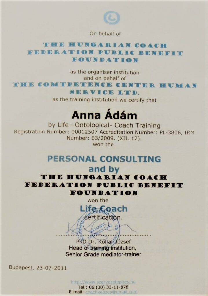 A coaching ülések, vagy folyamat végén mindig ott kell lennia az AHA érzésnek, hogy megtaláltam, tudom, átlátom, erős vagyok, magabiztosabb vagyok, tisztábban látom a helyzetem, a képességeim, önmagamat. Tudom mit akarok, merre menjek, merre induljak.
